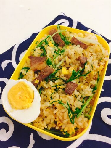 おはようございます 乏しい冷蔵庫の在庫でお弁当作れました。 久しぶりのお弁当 どーん ゆで卵がぐちゃっと。 1人焼肉した時の残りの肉四切れ冷凍室から発掘。しなびれる手前の水菜、卵。 にんにく出汁醤油で味付けしました。 ご飯が少ないかな?って感じだ…